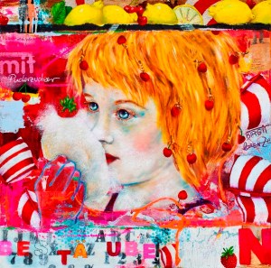 “Limoni, fragole, cupcakes e tante altre piccole prelibatezze… Lasciatevi tentare dalle colorate creazioni di Birgit Lorenz. Opere che attraverso la tela ed i colori lasciano assaporare la gioia di raccontare gli avvenimenti che caratterizzano la nostra società. Il singolo osservatore interpreterà queste opere diversamente ma esse sicuramente non vanno giudicate semplicemente come “una colorata decorazione”. Osservando attentamente, infatti, si può chiamente leggere molto di più tra i vari strati che compongono le opere di Lorenz, quasi si trattasse di libri illustrati.