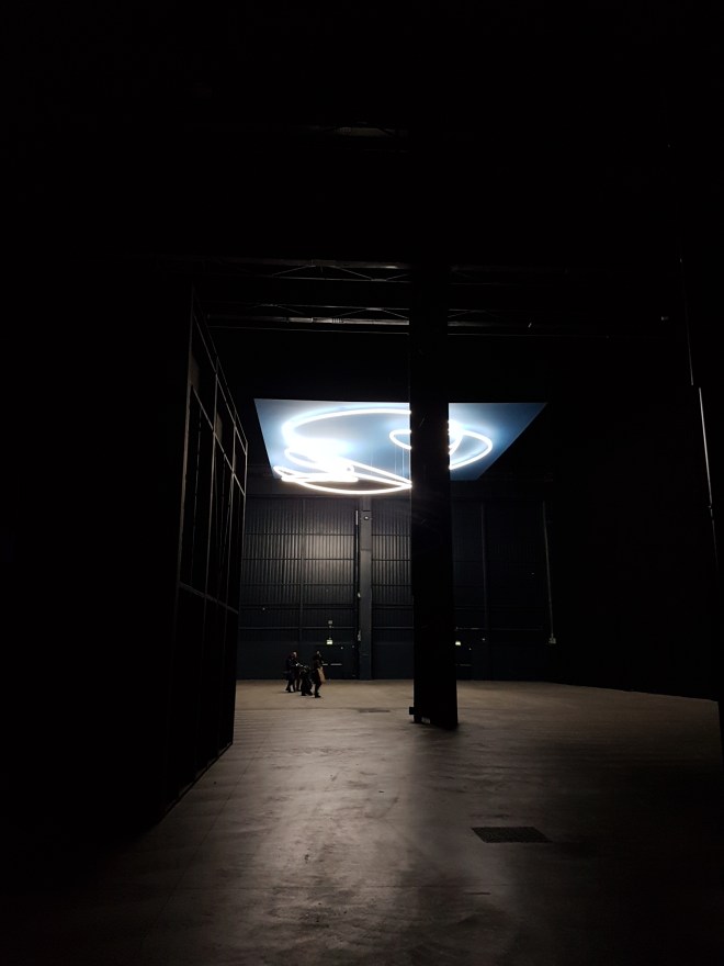 Detto ciò, trovo Ambienti/Environments, la mostra allestita presso gli insuperabili spazi dell’Hangar Bicocca di Milano (spazi che valgono da soli una visita, altra cosa di cui sono fermamente convinto), alquanto didattica e potenzialmente illuminante – e non è un mero e ironico gioco di parole legato alla tipologia di opere presenti, vere e proprie installazioni luminose ricostruite fedelmente come gli originali esposti da Fontana un po’ ovunque sul pianeta tra il 1949 e il 1968 e poi quasi sempre distrutti.