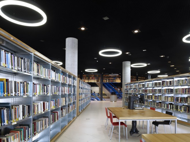 Cliccate sulle immagini per visitare il sito web della Biblioteca, oppure qui per leggere un articolo ad essa dedicato dalla rivista di architettura Domus.