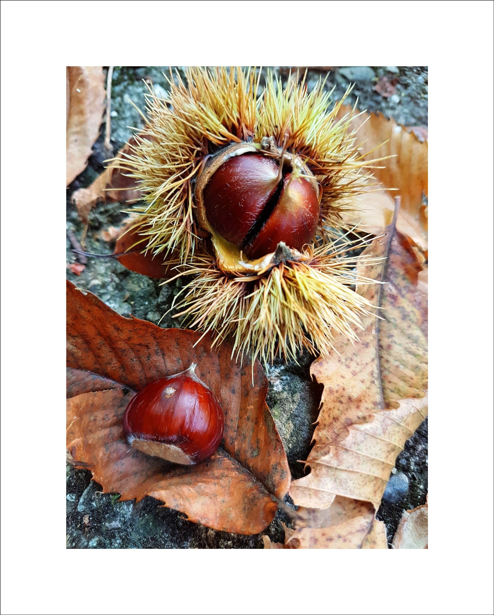 Poi, ieri, durante uno dei miei frequenti vagabondaggi montani, mi sono ritrovato in un bosco di vecchi castagni e la mulattiera che ho percorso era in diversi tratti tappezzata di ricci aperti, con il loro prezioso contenuto di castagne mature ben in vista – la foto in testa al post ne è valida testimonianza, spero.