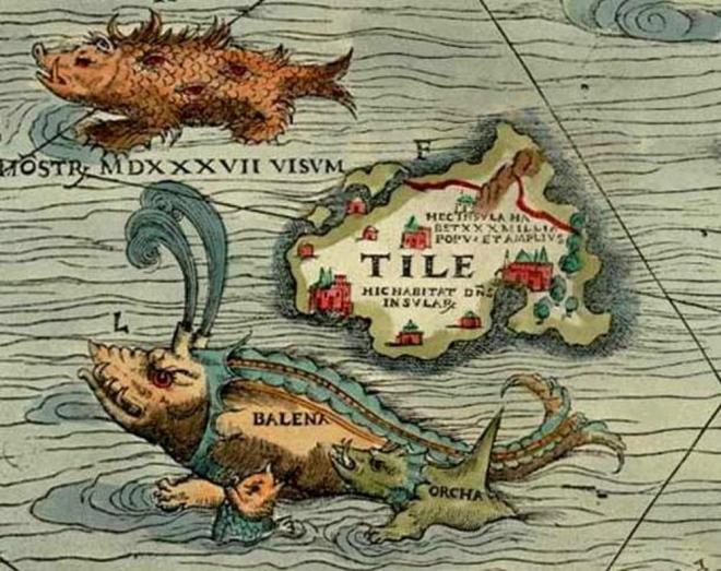 Questo piccolo insediamento umano sperso nelle vastità affascinanti del Grande Nord, si può ben dire che sia l’ultimo “frammento” dell’originario e sovrumano grande mito di Thule (altrimenti scritta Tule o Tile, come nell’estratto della Carta Marina di Olao Magno del 1539, in testa al post), una terra leggendaria citata per la prima volta nei diari di viaggio dell’esploratore greco Pitea (Pytheas), salpato da Marsiglia verso il 330 a.C. per un’esplorazione dell’Atlantico del Nord. Nei suoi resoconti (screditati da Strabone ma oggi considerati attendibili) si parla di Thule come di una terra di fuoco e ghiaccio nella quale il sole non tramonta mai, a circa sei giorni di navigazione dall’attuale Regno Unito. Nella Geografia di Claudio Tolomeo Thule è un’isola della quale si forniscono le coordinate (latitudine e longitudine) delle estremità settentrionale, meridionale, occidentale ed orientale.
