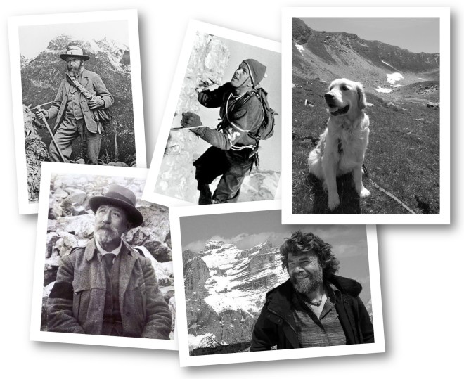 Ecco, voglio dire… ho come l’impressione che l’aver chiesto a Loki, il mio segretario personale a forma di cane, di mettere in ordine i libri di storia dell’alpinismo che ho a casa gli abbia fatto montare la testa, un po’. Dacché è lui che ha voluto (cioè, a me sembra sia così, anzi, ne sono sicuro, anche se capisco che possiate avere dei dubbi al riguardo) gli realizzassi la composizione fotografica qui sopra, già.
