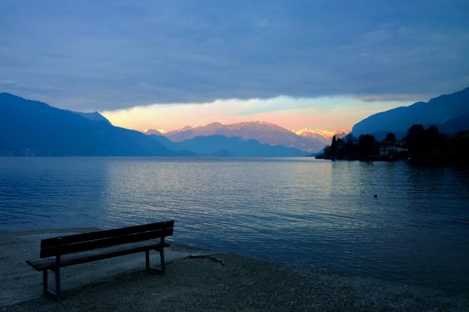 A nord e a est del lago, sul pallido biancore dell’alba, erano apparse le cime delle Alpi. Bianche di neve, anche in giugno, le Alpi si stagliano sull’azzurro chiaro di un cielo sempre limpido a quelle altezze immense. Una catena scende verso sud, verso la bella Italia, a separare il lago di Como dal lago di Garda. Fabrizio guardava in alto, verso quelle sublimi montagne. La luce era più forte, adesso, incideva le vallate, illuminava la nebbia leggera che saliva dal fondo delle gole.