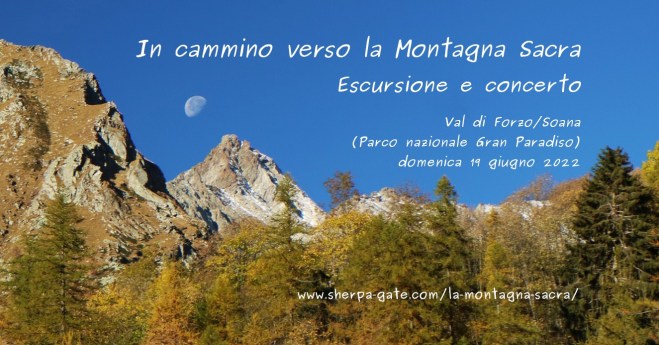 Domenica 19 giugno, alla borgata Molino di Forzo nel comune di Ronco Canavese, si terrà In cammino verso la Montagna Sacra, un’escursione sulla mulattiera che collega la Val Soana alla Valle di Cogne, con meta le borgate Boschietto e Boschettiera, pensata per divulgare le finalità del progetto “Monveso di Forzo – Montagna Sacra per la Natura”, in occasione del centenario del Parco Nazionale Gran Paradiso. Trovate il programma dettagliato qui oppure cliccando sull’immagine qui sotto.