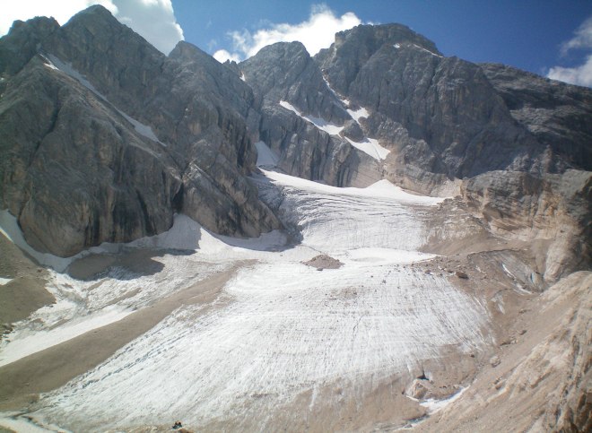 P.S. – Pre Scriptum: ho programmato per oggi la pubblicazione del seguente post, qui sul blog, e mai avrei immaginato che la drammatica cronaca delle ultime ore lo rendesse ancor più emblematico. Purtroppo la sparizione dei ghiacciai alpini non avverrà solo per fusione ma anche per franamento e crollo, con rischi estremi per tutto ciò vi sarà a valle. È un problema ulteriore legato al cambiamento climatico del quale si dovrà inevitabilmente tenere conto, che cambierà spesso drasticamente i paesaggi montani. Tornerò ancora sul tema, nei prossimi giorni.