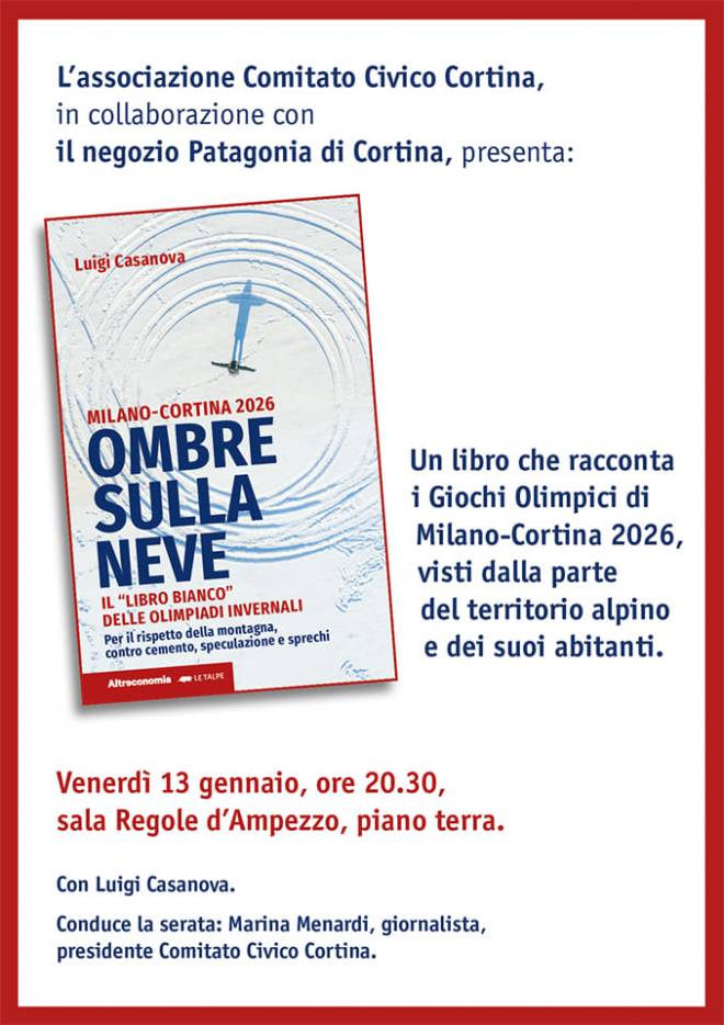 Venerdì prossimo, 13 gennaio, potrà essere un giorno alquanto proficuo per chiunque voglia approfondire la propria conoscenza delle montagne – in modi diversi ma tutti quanti interessanti quando non necessari – e si trovi a Firenze, Cortina d’Ampezzo o Lecco. Nei primi due casi, per avere coscienza e consapevolezza di realtà in corso che mettono a rischio la bellezza e l’integrità di due emblematici territori montani; nel terzo caso, per conoscere una persona che per la montagna ha fatto tantissimo, diventandone una delle figure di riferimento in senso assoluto: