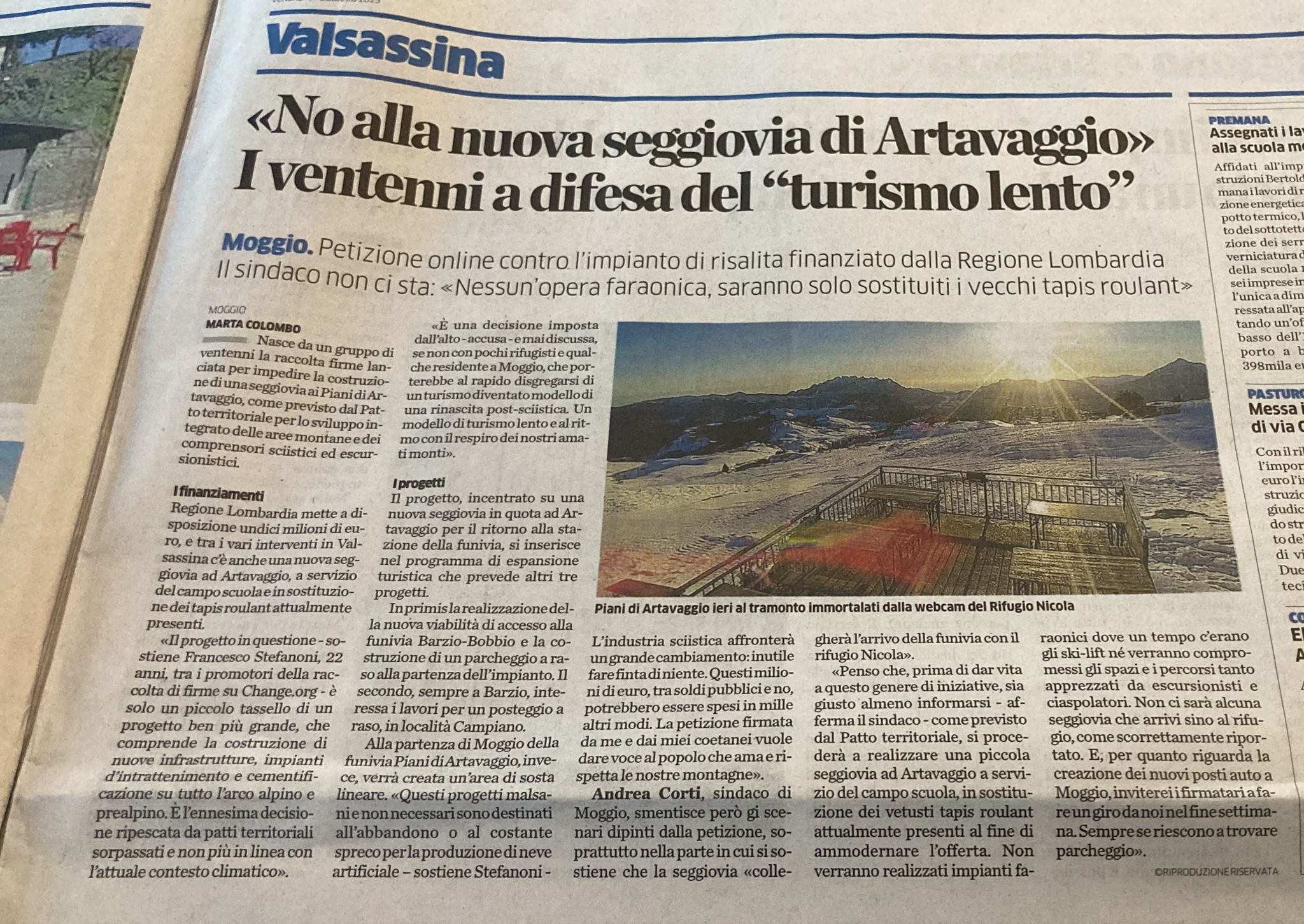 È un’iniziativa interessante e alquanto significativa, quella di «un gruppo di ventenni» del quale si fa promotore Francesco Stefanoni lanciando una petizione su Change.org (https://chng.it/NYwxVC8N22) per la salvezza dei Piani di Artavaggio dai progetti di “sviluppo turistico” dei quali ho già scritto numerose volte, sul web e sui media locali – e della quale ha scritto Marta Colombo su “La Provincia di Lecco” venerdì 3 febbraio. Importante perché rappresenta un ulteriore strumento di espressione della volontà di salvaguardia di un luogo di bellezza e storia peculiari, divenuto negli anni recenti un modello turistico citato e ammirato (scriverò a breve di ciò), che si vorrebbe degradare e banalizzare riportandovi lo sci su pista, nonostante la realtà climatica e economica che stiamo vivendo. Ed è del tutto evidente che la questione non sta nella “forma”, ovvero nella seggiovia piccola/grande o breve/lunga o quant’altro sulla quale si concentra buona parte del dibattito, ma sta nella sostanza culturale di una località che proprio grazie alla fine dell’epoca sciistica, che ad Artavaggio è stata importante ma si è inevitabilmente chiusa già a fine anni Novanta, ha saputo costruirsi un’immagine turistica e una valenza paesaggistica che, ribadisco, sono divenuti un modello ammirato e preso a esempio altrove nonché raccontato su numerosi testi – dalla guida Dol dei Tre Signori, della quale sono uno degli autori, fino al recente Inverno Liquido, volume che illustra i tanti casi di località ex sciistiche delle Alpi che hanno intrapreso un percorso di rinascita turistica più o meno di successo. Una sostanza culturale, ovvero un senso del luogo che evidentemente gli amministratori locali continuano a non capire, restando immobili sulle loro idee di “quantità” e ignorando la qualità (in senso negativo) degli effetti del loro progetto.