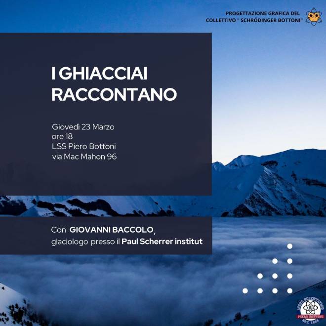 A chiunque domani sia in zona Milano o, per la precisione, in zona Liceo Scientifico Piero Bottoni e ne abbia le possibilità, consiglio caldamente di partecipare alla conferenza di Giovanni Baccolo della quale leggete qui sopra. Giovanni è uno scienziato del ghiaccio di grande competenza e sensibilità, la cui professione glaciologica non è che la manifestazione accademica del suo profondo legame con le montagne: anche per questo la materia glaciologica da lui raccontata diventa oltre modo affascinante, oltre che fondamentale da conoscere al meglio nei suoi aspetti concreti rispetto alla realtà – non solo ambientale – e al mondo che viviamo. In pratica Giovanni è veramente un ottimo portavoce dei ghiacciai che grazie a lui raccontano, come è ben scritto lì sopra. Dunque, se siete in zona, non mancate l’appuntamento!