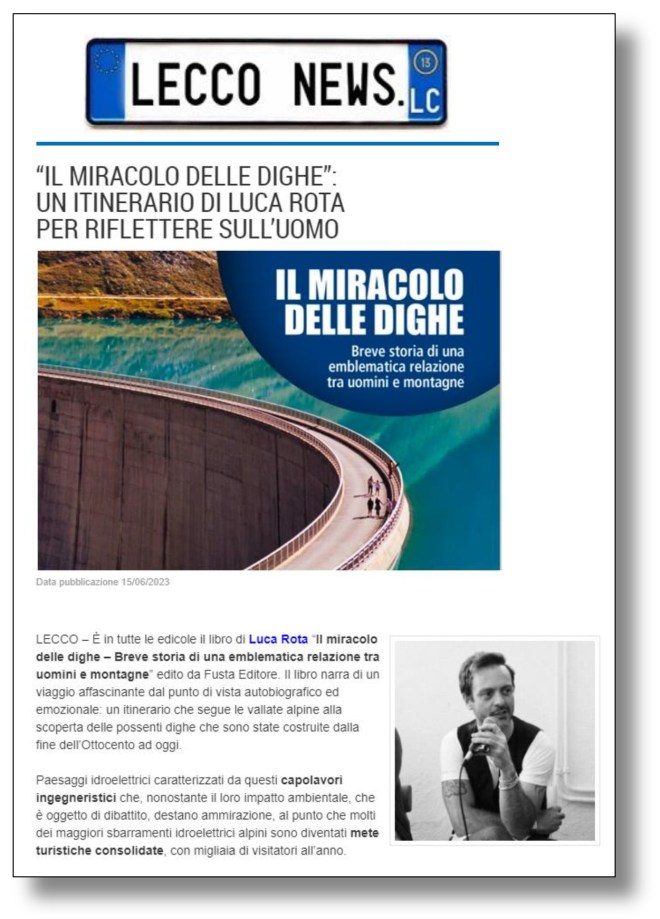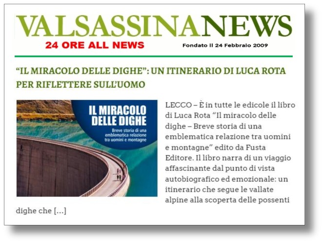 Un altro bell’articolo dedicato a Il miracolo delle dighe, il mio ultimo libro, è stato pubblicato in contemporanea da “LeccoNews” e “ValsassinaNews”, le cui redazioni ringrazio di cuore per l’attenzione e lo spazio che hanno voluto dedicare al libro.