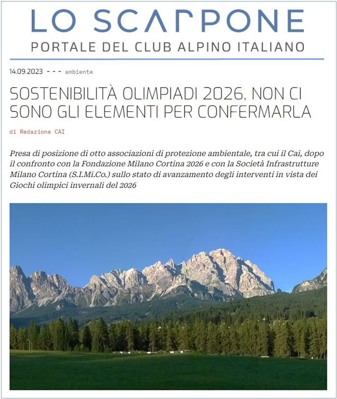 Al di là delle iniziali affermazioni fuori contesto proferite nell’intervista (vedi sopra), bastano poche domande per svelare l’infondatezza di quanto sostenuto dal Presidente lombardo: se le Olimpiadi di Milano-Cortina 2026 sono così “sostenibili”, perché le opere non vengono assoggettate alla VAS, la Valutazione Ambientale Strategica, come imporrebbe la legge? Forse perché si sa benissimo che, se valutate adeguatamente, le “Olimpiadi sostenibili” non sarebbero sostenibili affatto? E perché le “Olimpiadi sostenibili” anche economicamente, come dice il Presidente lombardo, hanno visto nei mesi aumentare in maniera spropositata i costi di tutte le opere, con l’esempio massimo al riguardo della nuova pista di bob a Cortina? Perché ai tavoli di confronto sulle varie opere non sono mai stati invitati e tanto meno ascoltati i portatori d’interesse dei territori coinvolti? Perché le associazioni “ambientaliste” (in verità non solo queste) si sono viste costrette ad abbandonare i suddetti tavoli di confronto con la Fondazione Milano Cortina constatandone il dialogo totalmente improduttivo?
