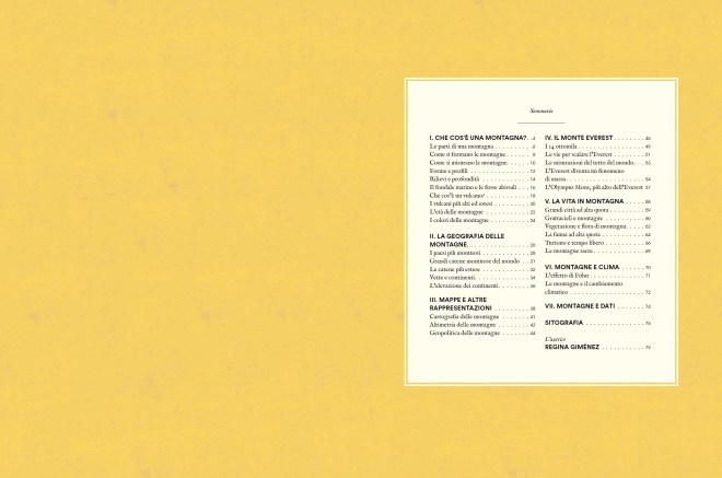 Pubblicata in edizione originale da Zahorì Books a Barcellona, in lingua catalana, è un’opera bellissima e non lo dico affatto perché ci abbia lavorato sopra ma perché lo è veramente, e perché la sua bellezza grafica e artistica è al servizio della conoscenza delle montagne del nostro pianeta, che è qualcosa di sempre affascinante e emozionante. In perfetto stile Topipittori, è un libro per i lettori più giovani ma che piacerà moltissimo anche ai grandi, nel quale l’intreccio tra testo e illustrazione è quanto mai importante, come detto, per come rimanda agli insegnamenti in tal senso del geniale Bruno Munari: giocare con l’arte per apprendere in modo creativo. Una pratica che a ben vedere non ha età: anzi, che proprio negli adulti può assumere caratteristiche che vanno oltre il mero aspetto ludico-ricreativo per diventare strumento potente come non mai atto ad alimentare la necessaria relazione culturale con il mondo nel quale viviamo. «Giocare è una cosa seria» sosteneva appunto Munari, esattamente come lo è frequentare le montagne, un’attività ludico-ricreativa ma che per essere veramente tale ha bisogno della conoscenza “seria”, cioè articolata e consapevole, di cosa le montagne sono.