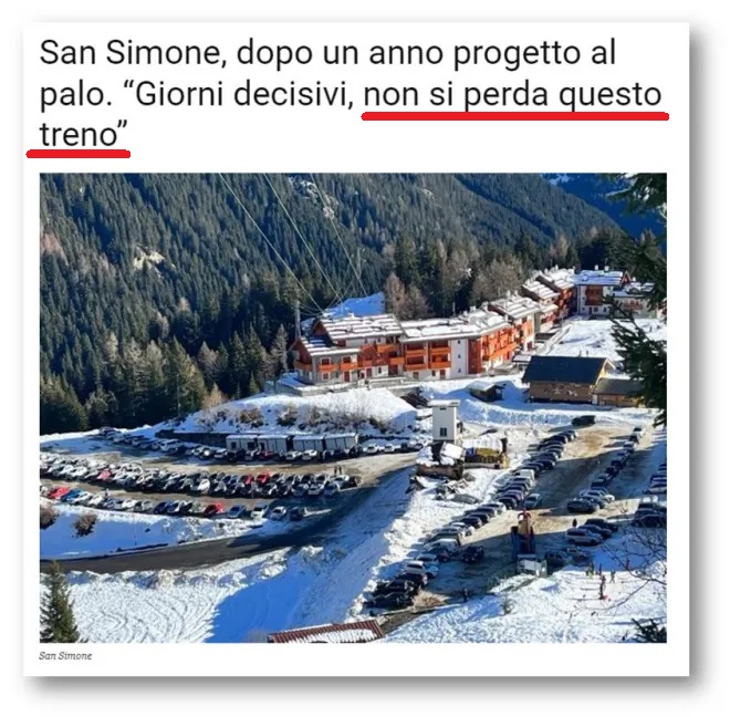 È parecchio significativo constatare come, quando si vogliano sostenere certi progetti turistici – in special modo sciistici – palesemente insostenibili e decontestualizzati rispetto ai territori ai quali vengono imposti, si fa sempre ricorso alle solite frasi: da «la montagna senza sci muore» alla «lotta allo spopolamento» fino all’«ultimo treno» per il rilancio e da non perdere – già “sentito” sulle montagne bergamasche a San Simone, ad esempio.