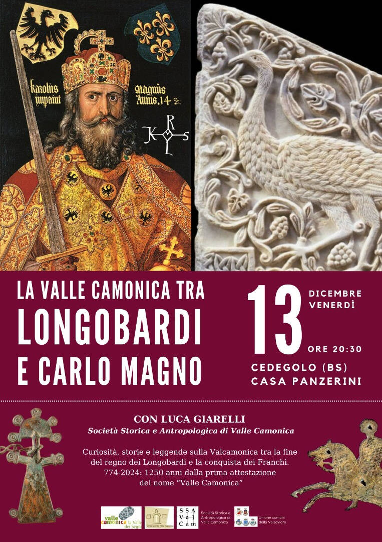 Per raccontare tutto questo affascinante periodo storico, e per continuare le celebrazioni del milleduecentocinquantesimo anniversario, la prestigiosa Società Storica e Antropologica di Valle Camonica venerdì prossimo 13 dicembre propone una conferenza che esplorerà le curiosità, documenti, storie e leggende legate al passaggio della valle e delle sue comunità dal regno dei Longobardi alla conquista dei Franchi, tenuta dallo storico medievista Luca Giarelli. È una bella occasione per conoscere l’identità storica di uno dei territori – ribadisco – più emblematici delle Alpi italiane: se siete in zona o vi potrete essere, certamente da non perdere.