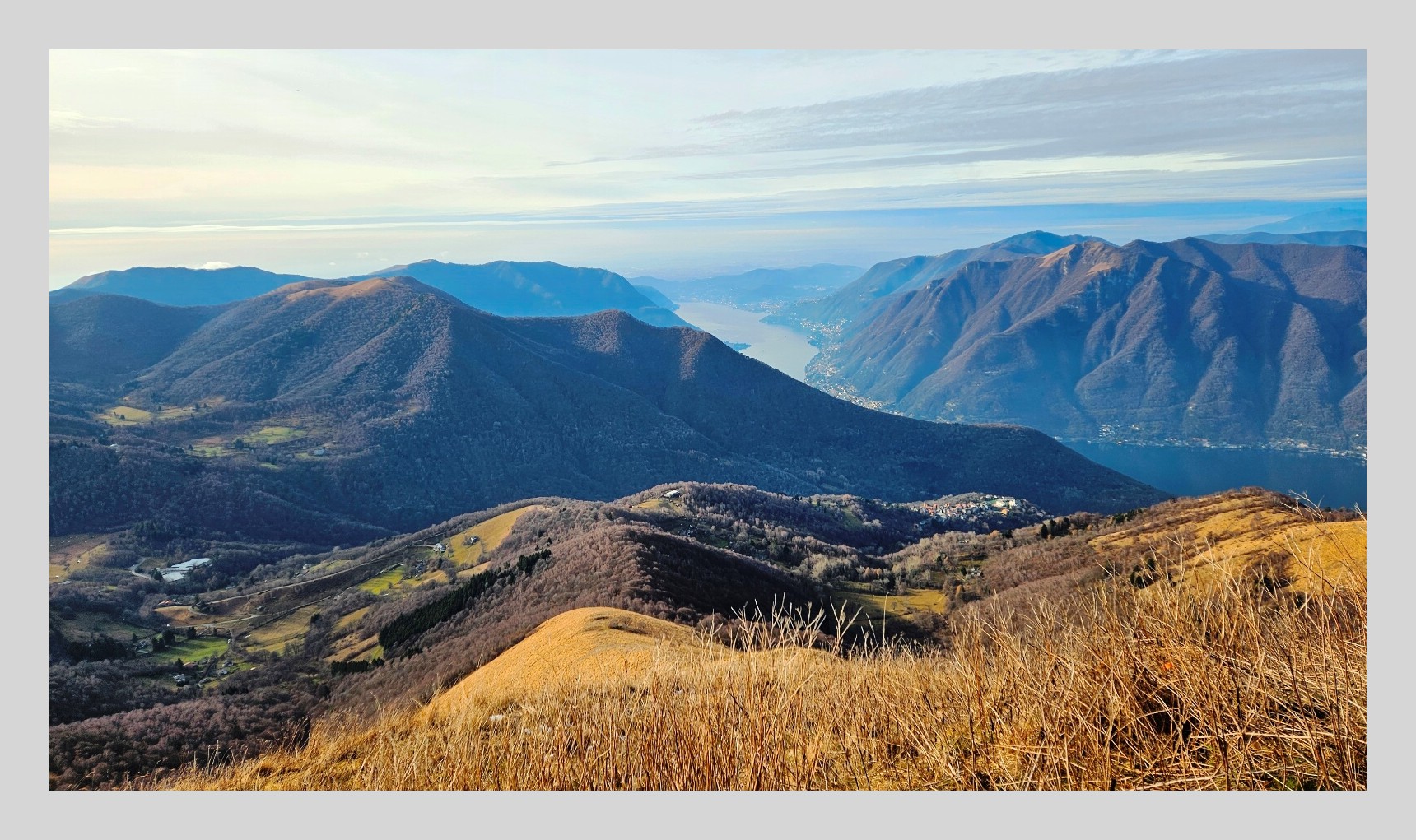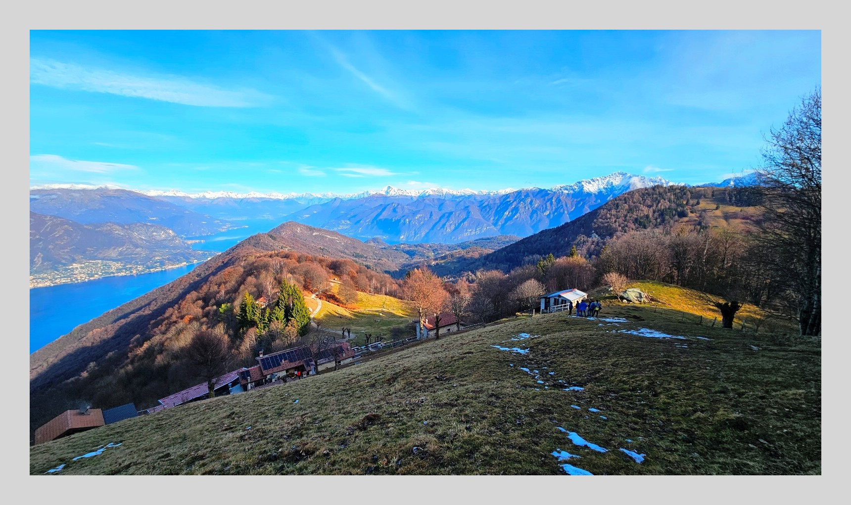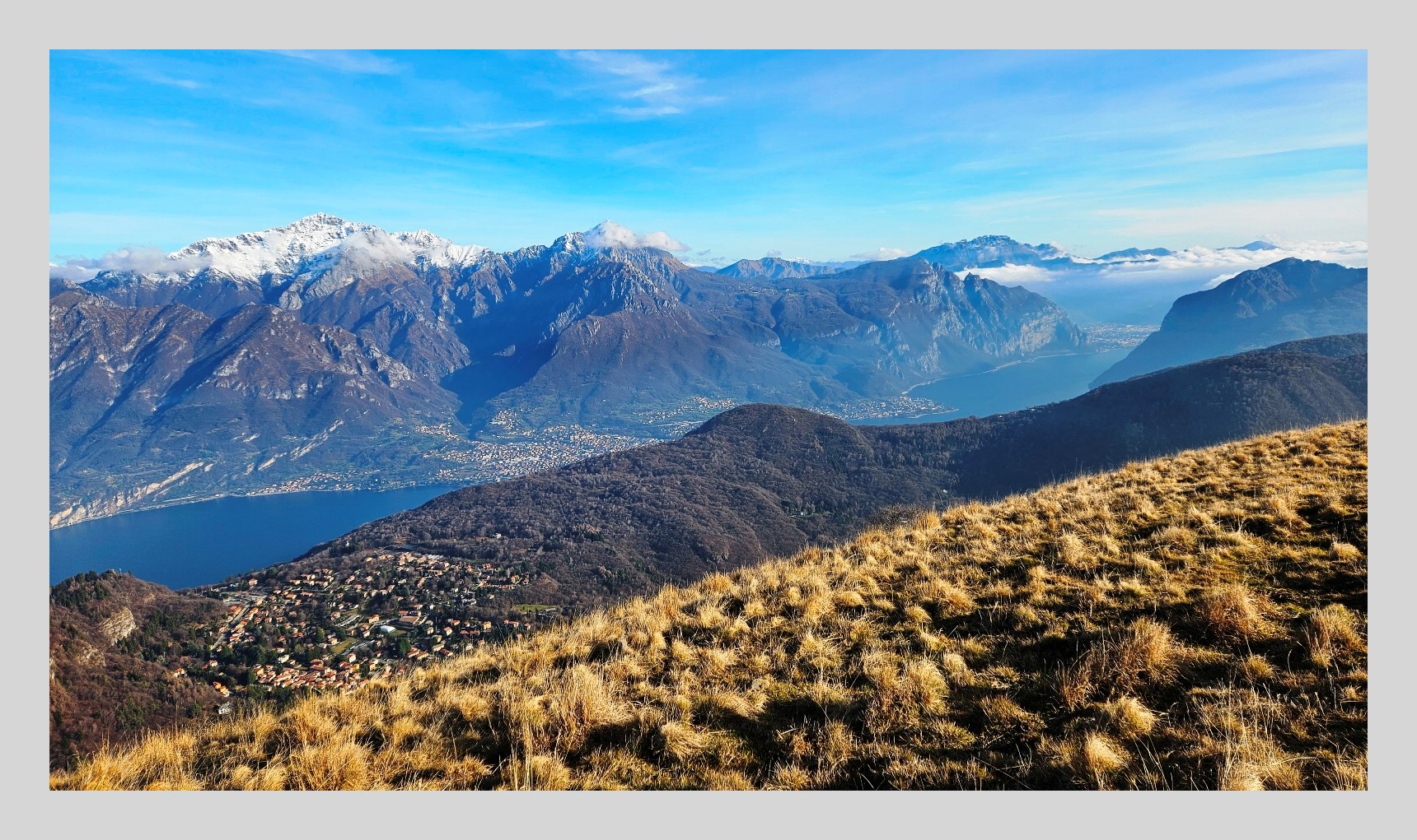 E allora, in quella scuola elementare di quando ero bambino, si studiava ancora la geografia (sia sempre maledetto chi decise di toglierla dai programmi scolastici), e avevo un libro di testo che tra le sue illustrazioni, in un capitolo sulla Lombardia o sui laghi alpini, non ricordo, ne aveva una con la celeberrima veduta del Lago di Como dalla vetta del Monte San Primo. Esattamente la stessa che ho rifatto io qualche giorno fa, tornando lassù, e che vedete lì sopra.