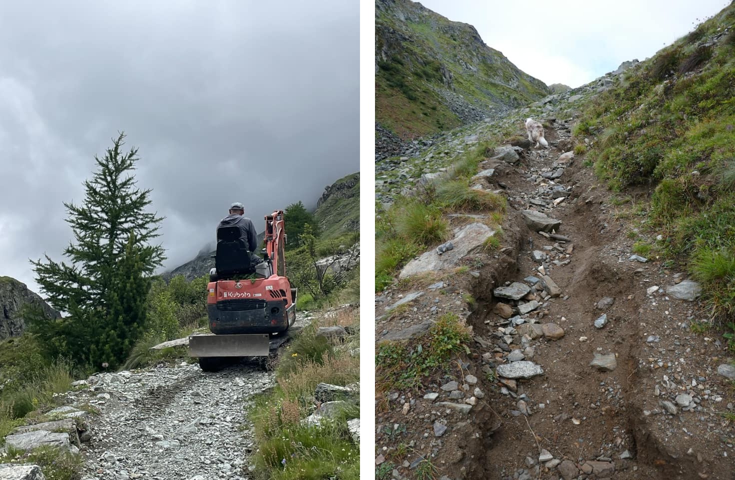 [Un’altra ciclovia di recente e famigerata realizzazione, quella che sale al Passo del Muretto in Valmalenco: a sinistra in fase di realizzazione nell’estate 2023, a destra come si era ridotta soltanto un anno dopo, tra piogge intense e transiti eccessivi. Per saperne di più cliccate qui.]In ogni caso la situazione è chiara: camminare su sentieri di montagna ordinari, o anche andarci con una mountain bike se si è in grado di farlo e non si arreca pericolo ad altri non va più bene, è qualcosa da disincentivare, è da sfigati. Servono strade, le più larghe e comode possibili che arrivino ovunque perché tutti hanno diritto (sic!) di andare ovunque in montagna e di andarci comodamente come in città o quasi. Con buona pace della frequentazione responsabile, del rispetto, della consapevolezza di cosa è realmente la montagna. E delle popolazioni locali, che dove non siano così stolte da essere concordi con tale scellerata strategia (e se lo sono è soltanto perché sperano di ricavarci qualche tornaconto personale) sono costrette ad assistere alla svendita, alla banalizzazione e alla devastazione delle proprie montagne.