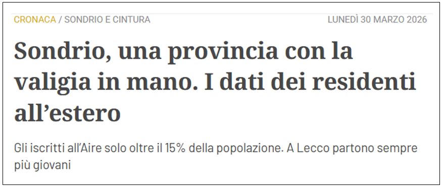 Non solo: la provincia di Sondrio cioè la Valtellina, territorio dove l’economia del turismo soprattutto invernale la fa da padrone (non a caso è stata eletta sede delle recenti Olimpiadi invernali), è una di quelle da cui si emigra di più in Italia: gli iscritti all’Aire (il registro degli italiani residenti all’estero) sono oltre il 15% della popolazione, più del doppio rispetto alla media regionale. E ad andarsene sono soprattutto i giovani, i quali evidentemente non vedono alcun buon e prospero futuro nel restare tra le loro montagne. Cioè, non trovano tutti questi soldi che lo sci lascerebbe nei territori turisficati come ANEF vorrebbe far credere.