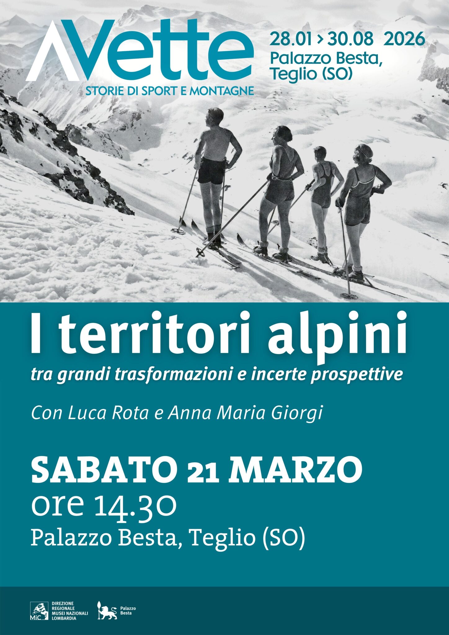 Sabato 21 marzo alle 14.30 sarò a Teglio, in Valtellina, nel meraviglioso contesto di Palazzo Besta, per partecipare all’incontro I territori alpini, tra grandi trasformazioni e incerte prospettive e dialogare al riguardo con Anna Maria Giorgi, direttrice del Polo UNIMONT/Università della Montagna di Edolo, sede d’eccellenza dell’Università degli Studi di Milano specializzato nella formazione, ricerca e valorizzazione dei territori montani.