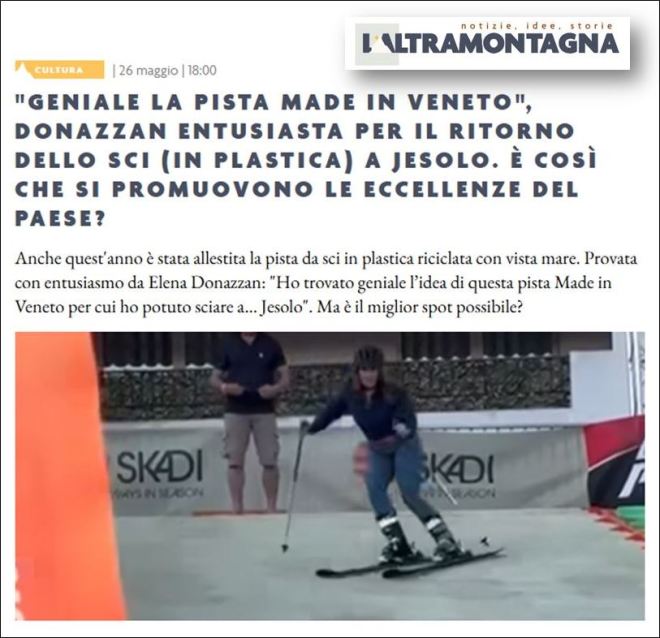 Secondo me ha assolutamente ragionel’europarlamentare Donazzan che ha «trovato geniale l’idea di questa pista Made in Veneto per cui ho potuto sciare a… Jesolo». Sciare a Jesolo, già, la nota località sul mare vicino a Venezia, su una pista di plastica. Riciclata ovviamente, dunque “sostenibile”.