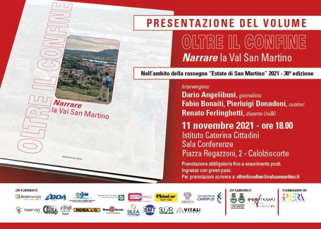 Come detto, la presentazione di Oltre il confine. Narrare la Val San Martino si terrà giovedì 11 novembre, alle ore 18.00, presso la sala Conferenze dell’Istituto Caterina Cittadini, in Piazza Regazzoni n°2 a Caloziocorte, nell’ambito della rassegna “Estate di San Martino” 2021 – 30ª edizione. La prenotazione è obbligatoria fino ad esaurimento posti. All’interno è necessario l’uso della mascherina; l’ingresso è con Green Pass. Le prenotazioni possono essere effettuate direttamente dal sito valsanmartino.it, nel quale troverete il form da compilare, oppure alla mail oltreilconfine@valsanmartino.it. C’è anche una pagina Facebook dedicata al volume e costantemente aggiornata, nella quale troverete molte altre informazioni e dettagli al riguardo.