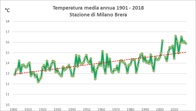 Le Alpi stanno subendo aumenti delle temperature maggiori rispetto ad altre zone del continente europeo: l’Intergovernmental Panel on Climate Change (IPCC), uno dei più autorevoli organismi internazionali in tema di cambiamenti climatici, afferma che negli ultimi decenni il tasso di riscaldamento sulle Alpi è stato di 0,3°C/10 anni, superando il tasso di riscaldamento globale che è stato di 0,2°C/10 anni. Tale maggiore aumento implica che entro la fine del secolo in corso la temperatura media nelle Alpi potrebbe aumentare di 4°C, ben oltre gli 1,5/2°C indicati come limite da non superare per la temperatura media globale dai più recenti accordi internazionali sul clima.