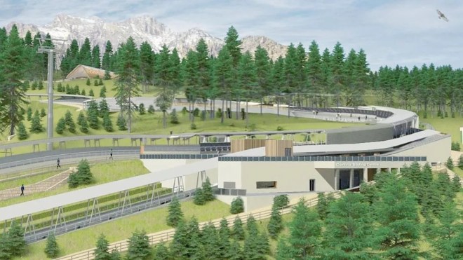 [Nell’immagine in testa al post: un rendering del nuovo – e orribile – Ski Stadium di Bormio; fonte www.sondriotoday.it/. Qui sopra: il rendering del più recente – ma ugualmente sconcertante – progetto della pista di bob di Cortina d’Ampezzo; fonte corrierealpi.gelocal.it.]