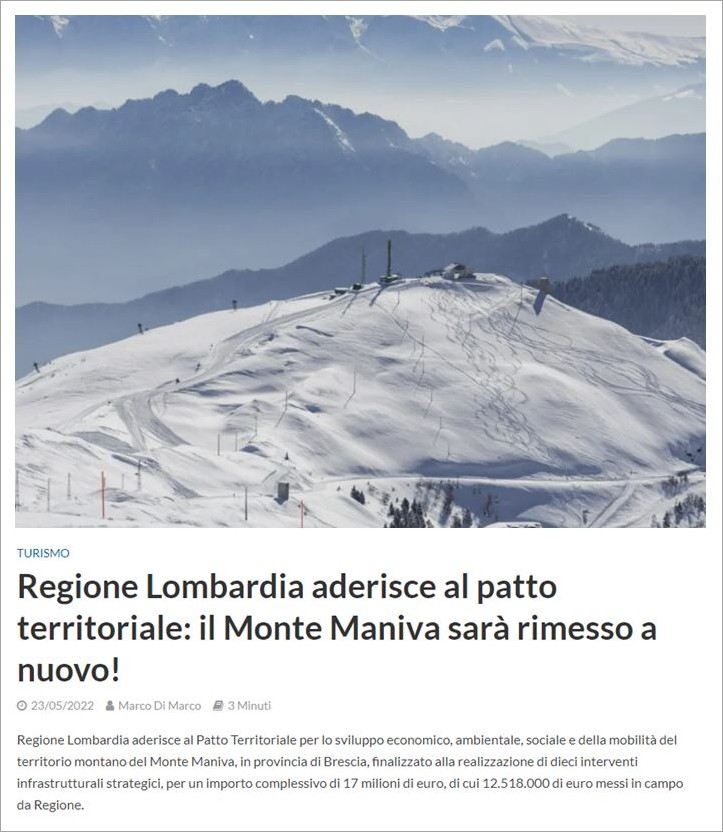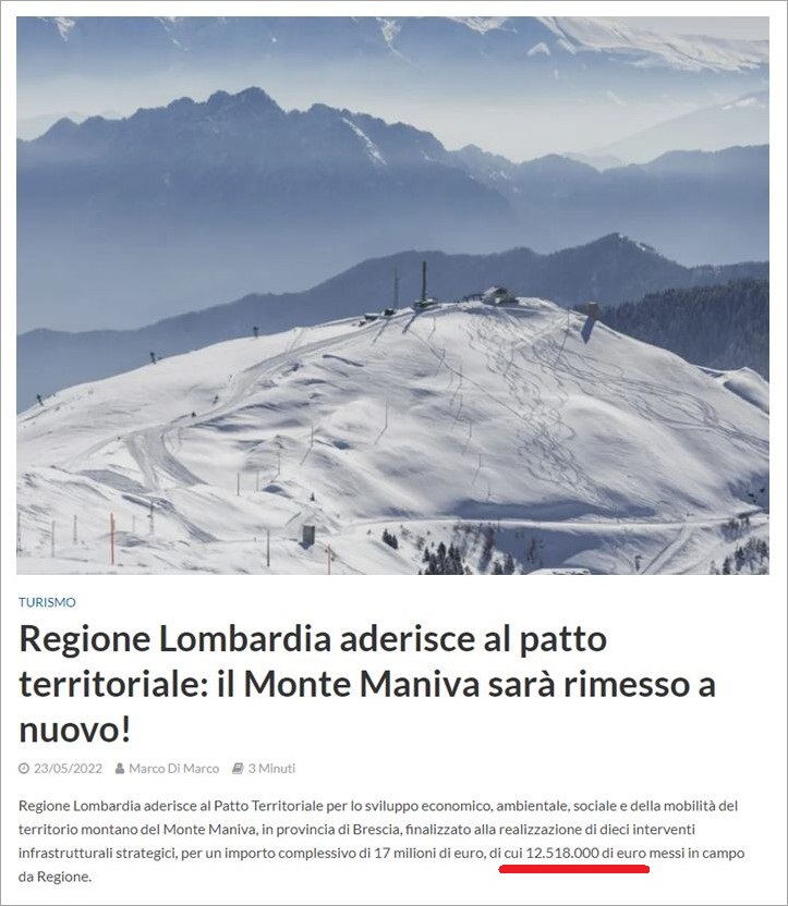 Quanti progetti realmente efficaci per la salvaguardia, il sostegno, il rilancio del territorio del Maniva, a supporto della sua realtà economica e sociale, dei servizi e dei bisogni dei residenti, per l’avvio di nuove e funzionali economie circolari locali, per la conoscenza culturale dei luoghi e la conseguente attrattiva turistica ovvero per lo sviluppo di un turismo contestuale al luogo e alle sue peculiarità, al passo con i tempi e rivolto al futuro, per la coltivazione di una autentica place experience, per far diventare le comunità locali realmente partecipi dello sviluppo futuro delle loro montagne e non semplice pedine di un gioco altrui meramente mirato al tornaconto e d’altro canto destinato al fallimento… – quante cose belle e buone si potrebbero realizzare, con 17 milioni di Euro, piuttosto di buttarli al vento come per l’ennesima volta si farà?