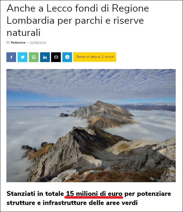 Posto ciò, devo anche dire che fatico parecchio a trovare un filo logico tra un intervento che destina per tutto il territorio lombardo 15 milioni di Euro a favore di un ambito a dir poco strategico, quello delle aree naturali protette, in primis per il buon futuro della regione e dei suoi abitanti…