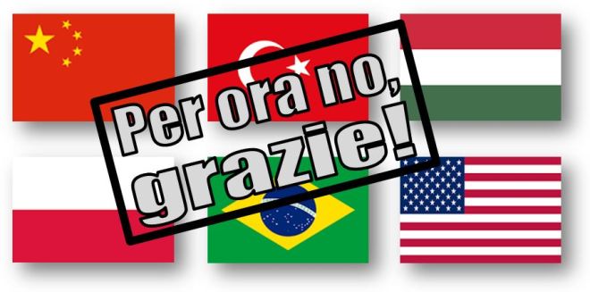 Non sono così ingenuo o borioso da credere che questa mia scelta, assolutamente meditata e razionale tanto quanto per nulla ideologica e strumentale, possa portare a qualche cambiamento nei paesi elencati (a meno che non sia manifestata e adottata da tanti); ma quanto meno, al riguardo, cambia il mio animo e vi dona un po’ di pace nonché l’impressione, spero giammai sprezzante, di una personale e desiderata coerenza. Ecco.
