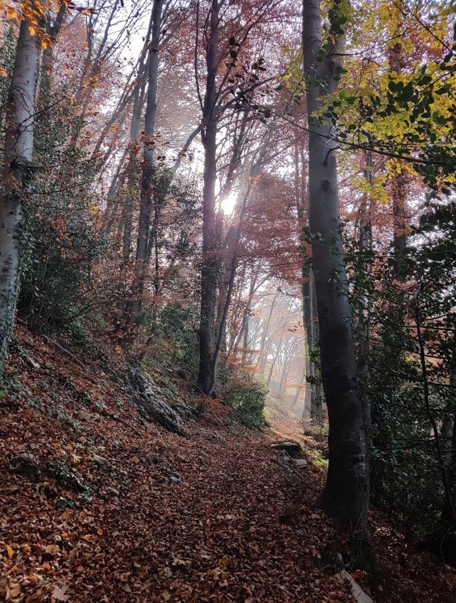 [Sentieri di casa.]In questi mesi, durante le varie “colorature” più scure della mia regione e i relativi lock down, con le restrizioni agli spostamenti che comportano, non potendo praticare l’amato vagabondaggio per paesaggi tanto naturali quanto urbani lontani dalle mie parti mi sono dedicato – con il prezioso aiuto di Loki, il mio segretario personale a forma di cane il quale si dimostra pure un ottimo “segugio di sentieri” – ne sto approfittando per riscoprire itinerari appena fuori casa (nel senso letterale della definizione) e luoghi che facevano da meta alle passeggiate di quand’ero bambino con i genitori o i nonni. Una pratica che peraltro, in questi giorni di transito dall’inverno alla primavera, si rivela particolarmente piacevole, con le temperature diurne miti, la luminosità già da “bella stagione”, il bosco ancora assopito ma i prati già puntinati di innumerevoli e coloratissime fioriture – nonché, devo ammettere, l’assenza quasi totale di disturbi antropici, almeno in certe zone particolarmente “remote” seppur situate a poche centinaia di metri di distanza dalla “civiltà”.