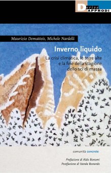Di molte di queste situazioni, degradate in fallimenti che hanno devitalizzato le relative località o evolute in processi di riconversione turistica più consone alla realtà climatica e economica contemporanea ne scrive Inverno Liquido, il libro di Maurizio Dematteis e Michele Nardelli pubblicato lo scorso gennaio da DeriveApprodi (qui accanto ne vedete la copertina): un testo fondamentale per inquadrare al meglio il tema suddetto e per acquisirne una conoscenza utile a comprenderne la portata.