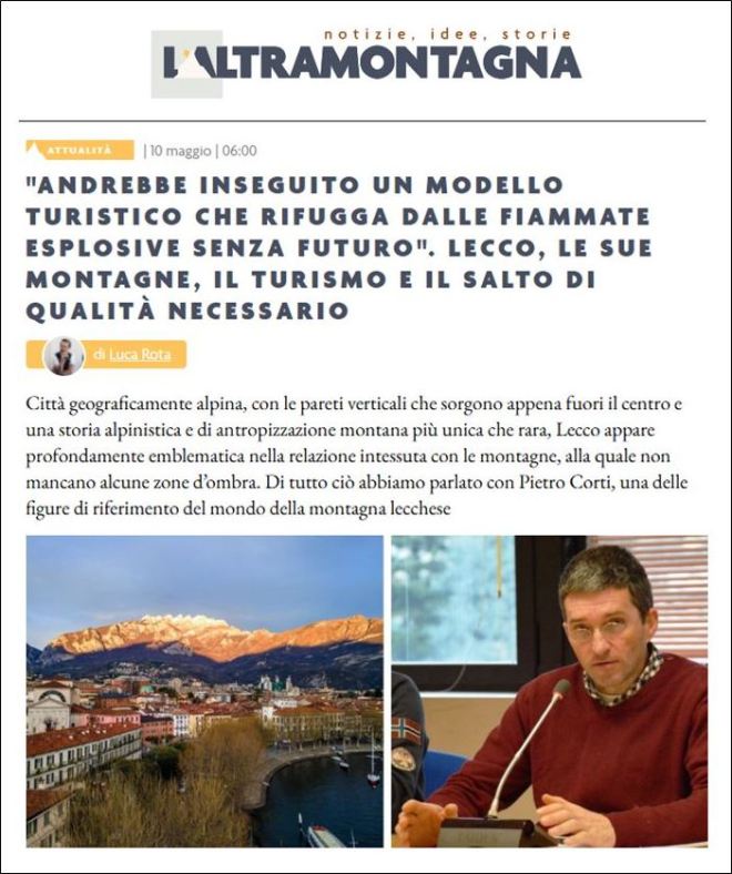 Pietro Corti è una delle figure di riferimento del mondo della montagna lecchese. Storico dell’alpinismo, scrittore, estensore di guide del settore, curatore del sito “Larioclimb”, conosce la dimensione montana di Lecco come pochi altri, sia nella sua evoluzione passata che nella realtà contemporanea e nello sviluppo prossimo futuro. Lecco, città geograficamente alpina come poche altre, con le pareti verticali che sorgono appena oltre le ultime case e una storia alpinistica e di antropizzazione montana più unica che rara, in effetti appare emblematica nella relazione intessuta con i propri monti, sovente straordinaria e affascinante ma nella quale non mancano zone d’ombra e una sorta di costante e latente trascuratezza riguardo il suo valore e l’importanza. Di tutto ciò ne ho chiesto conto a Corti, che tratteggia una fotografia della Lecco montana particolareggiata e alquanto significativa: l’intervista completa è su “L’AltraMontagna”, di seguito ne trovate un’anteprima.