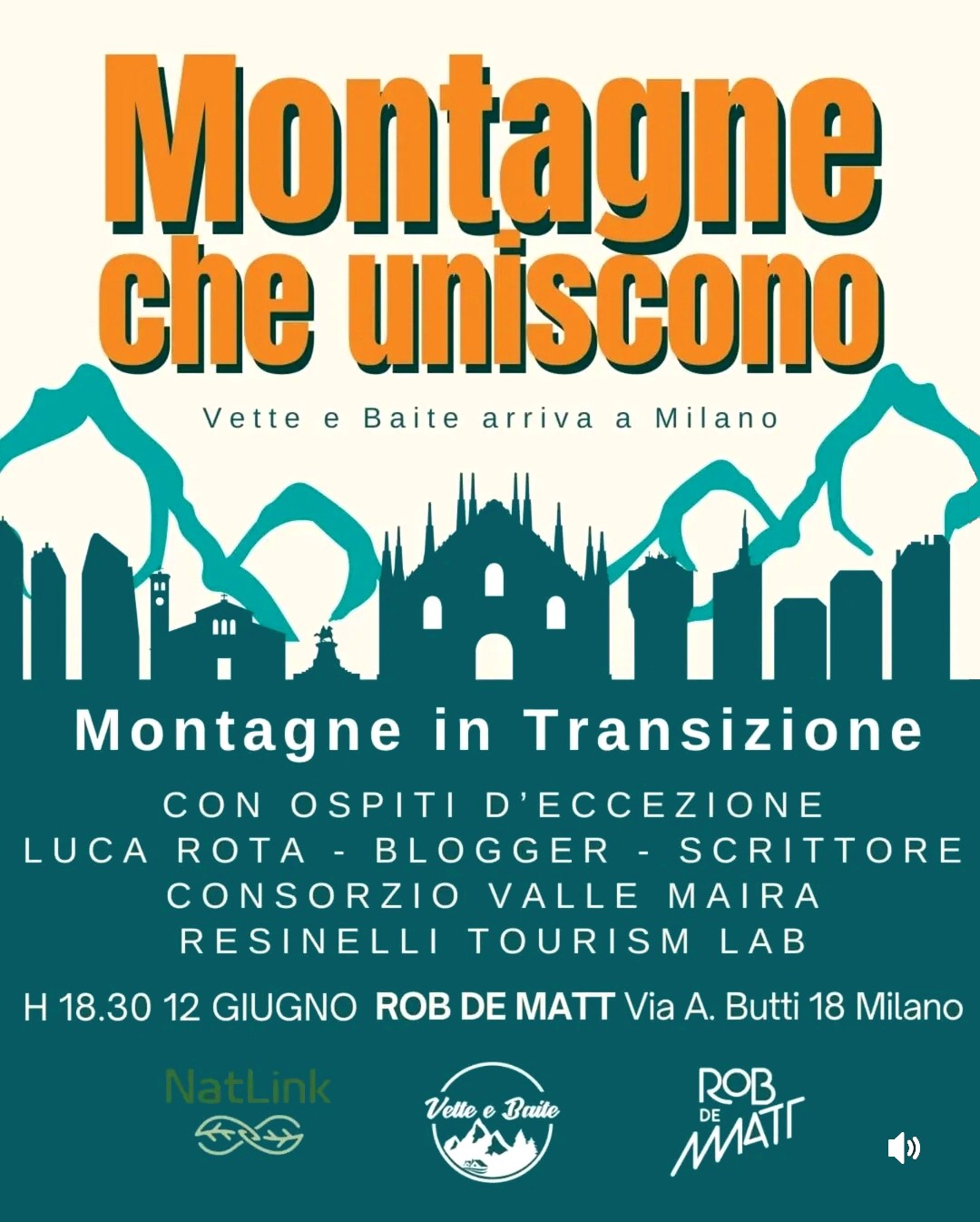 Giovedì 12 giugno dalle 18.30 sarò a Milano, nei bellissimi spazi del ristorante/bistrot Rob de Matt, per parlare di “Montagne in transizione. Dall’economia del latte, allo sci, al turismo sostenibile. Prospettive per la vita e la frequentazione della montagna tra “overtourism” e valli dimenticate”. nell’ambito della rassegna Racconti dalle Terre Alte curata da NatLink APS, Vette e Baite Cooperativa Sociale, Associazione Rob de Matt.