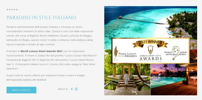 [Per ingrandire l’immagine cliccateci sopra.]Qualcuno che sia meno bisbetico dello scrivente mi spiega che senso ha “viaggiare” (virgolette inevitabili) a migliaia di km di distanza fino a un paese di cultura, genti, tradizioni, cibo, geografia, paesaggio, quotidianità, atmosfera totalmente diversi da quelli propri – nonostante l’infrastrutturazione turistica occidentale – dunque chissà quanto affascinanti da scoprire e conoscere entrandovi direttamente in contatto, per finire in un «paradiso in stile italiano» con «ospitalità italiana» e persino il «ristorante italiano»? Magari, se tanto mi dà tanto, col rischio di ritrovarsi di fianco al buffet il proprio commercialista o il vicino di casa che abita tre piani sopra, con intorno molti altri italiani!