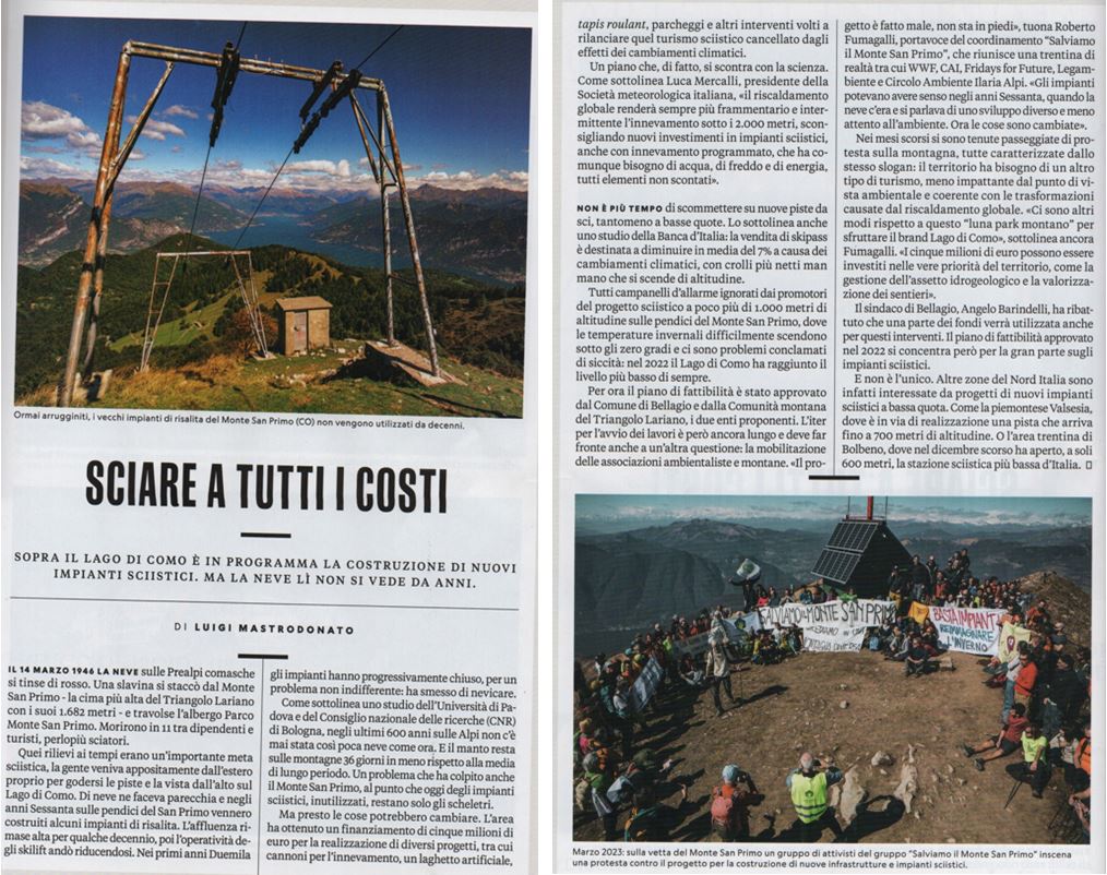 [Costruire impianti sciistici a poco più di 1000 metri di quota: questo, a mio parere, è un esempio di deresponsabilizzazione della politica in montagna.]Lo stesso tratto, questa diffusa deresponsabilizzazione, la ritrovo anche nella gestione odierna dei territori montani: ad esempio quando vengano proposti progetti di turistificazione nei quali non via sia alcuna valutazione autentica delle conseguenze delle opere previste e tanto meno alcuna assunzione di responsabilità al riguardo da parte di chi le promuova e autorizzi – cosa ancora più grave quando i progetti siano finanziati con soldi pubblici, il che imporrebbe il dovere di rendere conto alla società civile, soprattutto se nel tempo quelle opere si rivelano sbagliate o causanti un danno materiale o immateriale. Ugualmente, ritrovo questa deresponsabilizzazione nel caso opposto, quando non si facciano cose per i territori di montagna e le loro comunità che ne avrebbero bisogno adducendo innumerevoli motivazioni, sovente tangibili tanto quanto inaccettabili, che in realtà celano una sostanziale noncuranza, a volte un palese cinismo, che sono figli del rifiuto di assunzione di responsabilità nei confronti di ciò che andrebbe fatto e soprattutto di chi ne dovrebbe giovare.