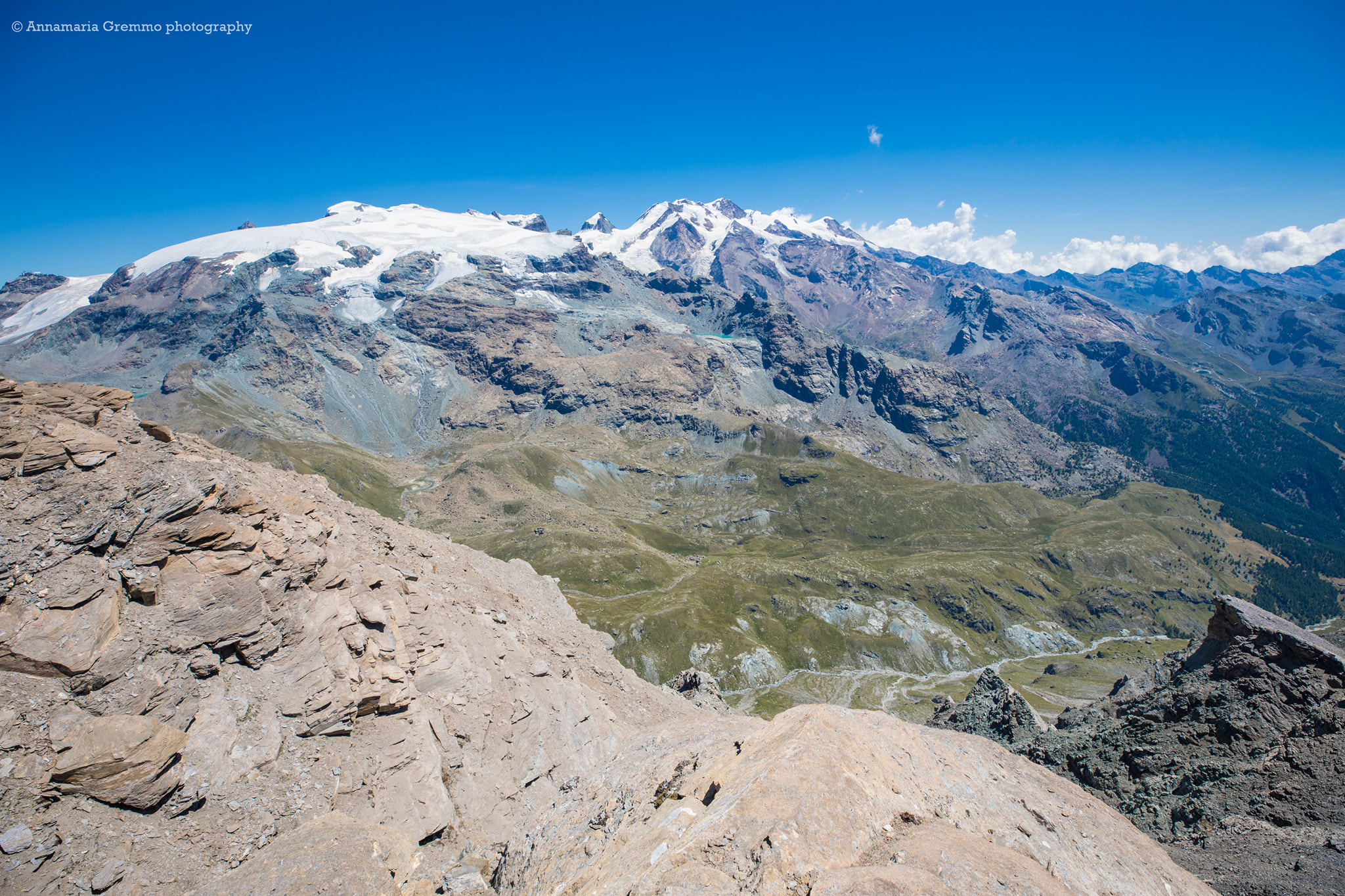 A tal proposito, vengo al dato di fatto che il “Matterhorn Alpine Crossing” evidenzia, legato all’aspetto dell’impatto della nuova funivia nel luogo e nel paesaggio tra il Plateau Rosa e il Klein Matterhorn. Capisco bene i tanti che denunciano la pesantezza di tale impatto e le sue criticità ambientali, tanto più in considerazione della funzionalità dell’impianto, prettamente turistica e nemmeno in chiave sciistica. Di contro, obiettivamente, la nuova funivia è inserita in un contesto certamente d’alta montagna ma già pesantemente infrastrutturato, con un ghiacciaio sofferente sul quale insistono tralicci e cavi d’ogni sorta e altri manufatti funzionali alla sua fruizione turistica. Salendo a Plateau Rosa e osservando tutt’intorno, ovunque lo sguardo intercetta qualcosa di antropico e artificiale, che spesso di pone inframezzo la veduta delle meravigliose vette, quasi tutte superiori ai 4000 m, che ornano l’orizzonte. Voglio dire: bella o brutta che possa apparire la nuova funivia, e visto che ormai c’è (e che l’opposizione alla sua realizzazione, se mai c’è stata, ha perso la sua battaglia), meglio che sia stata realizzata lì piuttosto che in un altro territorio montano ben più integro ovvero ancora pressoché intatto nel suo aspetto naturale, paesaggistico e ambientale. In tal senso il pensiero inevitabilmente corre al vicino e incontaminato Vallone delle Cime Bianche e agli impianti funiviari che vi si vorrebbero installare, questi sì una devastazione ex novo di un ambiente e un paesaggio ormai più unici che rari, in questa zona delle Alpi: una cosa inammissibile sotto ogni punto di vista se non da quello che vede e concepisce le montagne soltanto come uno spazio da trasformare in “bene” da consumare e dunque in denaro, senza alcuna cura verso la loro bellezza e nessuna tutela dell’ambiente naturale. Come fossero una periferia cittadina da infrastrutturare dacché altrimenti inutile, ne più ne meno.