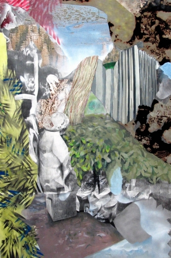 Alessandro Roma nel suo lavoro restituisce la duplice forma del paesaggio e del giardino, completezza e frammento, di uno spazio definito che custodisce al suo interno elementi di richiamo che non sono però di immediata assimilazione. La pittura vive in equilibrio tra figurazione ed astrazione, la scultura restituisce al contempo forme antropomorfe e la memoria di contenitori atavici di elementi naturali, mentre i collages si configurano come bozzetti che tracciano visioni surreali.“