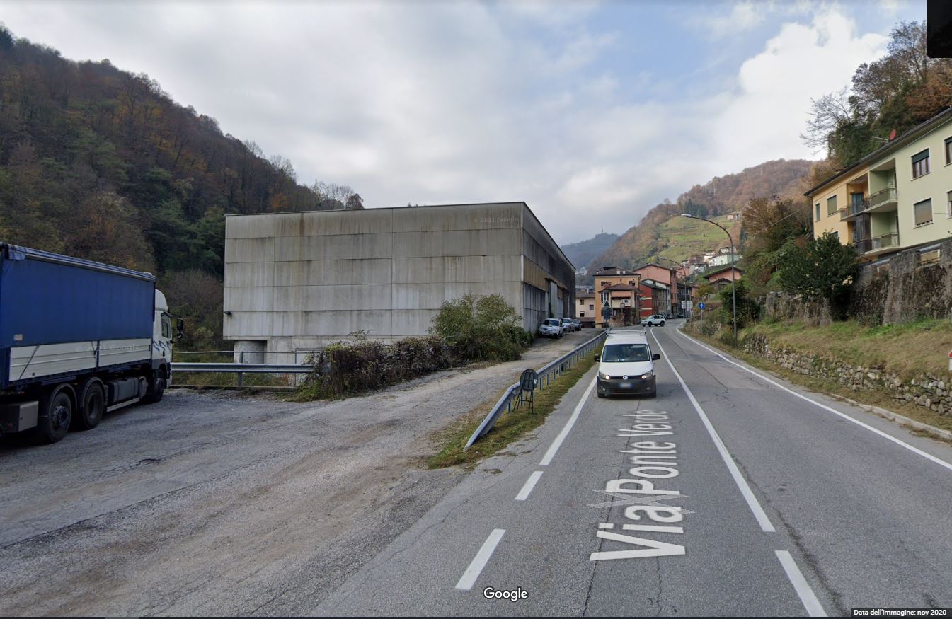 [Il “cubo” come si vedeva entrando in Recoaro, da Google Maps.]Poi, certamente, bisogna considerare tutto ciò che gira intorno ad essa e le domande inevitabili che abbisognano di buone risposte (come si è potuto costruire un obbrobrio simile? Chi lo autorizzò e cosa si farà perché non accada più in futuro? Come verrà riutilizzata l’area liberata dal cemento? Rappresenta un intervento una tantum oppure il primo di una strategia di rinnovata sensibilità verso il luogo e il suo paesaggio? – eccetera…) ma, tra innumerevoli scempi cementizi e infrastrutturali con relativi consumi di suolo – il preziosissimo e delicato suolo di montagna ma non solo quello, e il Veneto è risaputamente tra le regioni italiane peggio messe al riguardo – che si vedono progettati e purtroppo spesso realizzati, la demolizione del “cubo” di Recoaro è realmente un «evento» importante il quale può e deve rappresentare un esempio, un modello virtuoso, un ottimo consiglio da seguire nonché, ovviamente, un elemento di speranza affinché si possa togliere dalle mani e dalle menti di amministratori pubblici scriteriati e irresponsabili – e dei loro sodali – il destino delle nostre montagne, patrimonio comune di natura e di bellezza che ognuno di noi ha il diritto e il dovere di salvaguardare al meglio.