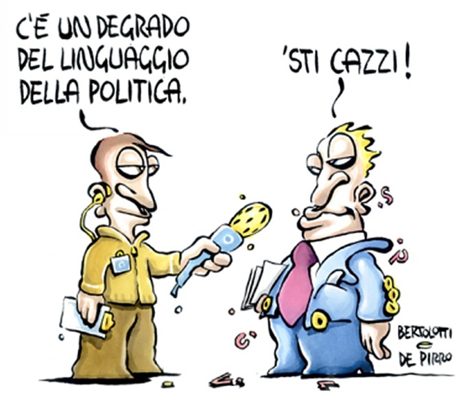 Siamo ben oltre la mera retorica politica, quella che poi si esprimeva – si diceva un tempo – in “politichese”, il quale quanto meno era un linguaggio che non diceva nulla ma lo diceva bene. Qui siamo ormai alla gara di rutti da bettola di infima specie, se non ancora oltre. Un lessico anticulturale e anticivico che erompe dalle pance e parla alle altre pance sodali, vantandosene per giunta. Oppure – e così torno a ribadire la mia più solida convinzione in merito – l’effluvio di un organismo istituzionale morto ormai da tempo, che dunque mai nelle parole attraverso cui si manifesta potrà palesare una qualche forma pur residua di vita politica. Amen.