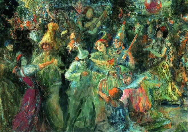 [Fedor Adol’fovich Vogt, “Carnival”, 1935, Minsk, Museo Nazionale d’Arte della Repubblica di Bielorussia. Fonte dell’immagine: qui.]Ma in effetti, se ordinariamente i politici si presentano alle elezioni o a qualsiasi altra circostanza elettorale affermando che faranno cose che poi non fanno attraverso dichiarazioni alla collettività senza alcun valore, per equipollenza politica ciò non dovrebbe determinare che le preferenze elettorali da essi conseguite, in quanto dichiarazioni collettive di voto, vengano sì espresse ma poi non abbiano alcun valore?