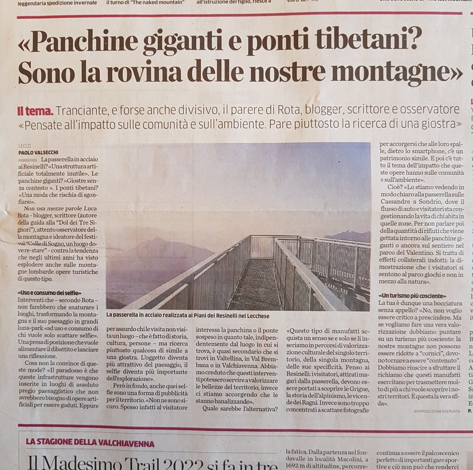 Quando disquisisco qui sul blog o altrove di opere, lavori, interventi e progetti in montagna che nei fatti appaiono quanto meno discutibili se non proprio dissennati e guidati da logiche che con la cultura di montagna e la salvaguardia del paesaggio alpino stridono palesemente, qualche amico che magari a sua volta si occupa di questi argomenti me lo fa notare spesso: «tu denunci, noi denunciamo ma poi la maggior parte delle persone non capisce, a volte persino approva!» e chi agisce in quel modo, anche a fronte di danni evidenti, lo fa e continua a farlo in modo indisturbato e senza alcuna conseguenza o riconoscimento delle proprie responsabilità, scambiando furbescamente la noncuranza e l’inconsapevolezza (dovrei scrivere “ignoranza”, forse?) maggioritaria come gradimento e consenso.