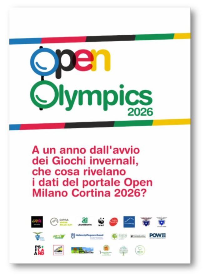 Da tutto ciò, al netto del pantano politico nel quale purtroppo le Olimpiadi sono state immerse, sorge il gran rammarico per un’occasione che si sta perdendo, come rileva bene il recente secondo report di “Open Olympics 2026” che riporta i rilievi del monitoraggio sull’andamento organizzativo dell’evento: cliccate sull’immagine qui accanto per leggerlo. I Giochi Olimpici di Milano-Cortina potevano (forse ancora potrebbero, se il buon senso tornasse) rappresentare una prestigiosa opportunità di sviluppo per i territori alpini coinvolti e di costruzione di un’immagine del paese consona ai tempi che stiamo vivendo, alle loro criticità tanto quanto alle possibilità in tema di transizione ecologica, di sostenibilità ambientale e economica, di progresso sociale e culturale.