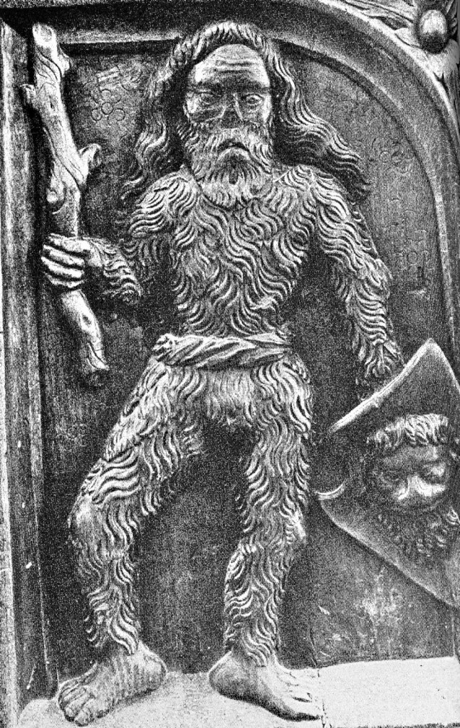 Raffigurazione di un Uomo Selvatico nella chiesa di Ambierle, in Francia.