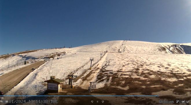[La situazione sulla Maielletta martedì 30 gennaio 2024. Immagine tratta da www.majellettawe.it.]La questione va finalmente analizzata non solo dal punto di vista ambientale, con tutte le sue varie ricadute, ma anche da quello economico – sembra scontato affermarlo, tuttavia alla prova dei fatti non mi pare che lo sia. Molto semplicemente, nei prossimi anni sempre di più lo sci perderà quegli aspetti che nei decenni scorsi lo hanno reso remunerativo, che ora lo rendono “ammissibile” ma in molti casi solo grazie all’immissione di risorse pubbliche, e che domani lo decreteranno del tutto insostenibile – ma è un domani già oggi manifesto in numerose località e che è già storia per centinaia d’altre che negli scorsi anni si sono dovute arrendere all’evidenza dei fatti (249 stazioni chiuse e con impianti dismessi più altre 138 temporaneamente chiuse per difficoltà varie, secondo il rapporto di Legambiente “Neve Diversa 2023”).