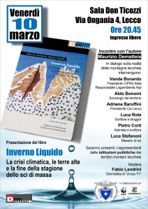 Avete letto qui sopra qualche passaggio dal comunicato stampa relativo alla presentazione – avvenuta ieri, martedì 7 marzo a Torino – del report Neve Diversa 2023. Il turismo invernale nell’era della crisi climatica, come sempre curato da Legambiente. Vanda Bonardo, che nella sua veste di Responsabile Alpi per l’associazione ambientalista è una delle referenti principali del report e dei temi in esso analizzati, sarà presente venerdì prossimo 10 marzo a Lecco (si veda la locandina qui accanto, cliccateci sopra per ingrandirla) in occasione della serata organizzata per la presentazione del libro Inverno liquido e per avviare un conseguente confronto sui temi del turismo invernale (e non solo) sulle nostre montagne tra i relativi amministratori pubblici e i soggetti privati che vi operano a vario modo e che saranno presenti all’incontro. Riguardo la nuova edizione del dossier, Bonardo osserva che «La neve artificiale che negli anni ottanta era a integrazione di quella naturale, ora costituisce il presupposto indispensabile per una stagione sciistica, a tal punto che i comprensori per sopravvivere richiedono sempre nuove infrastrutture. Non si considera però che se le temperature aumenteranno oltre una certa soglia, l’innevamento semplicemente non sarà più praticabile se non in spazi molto ristretti di alta quota, in luoghi dove i costi già elevati della neve e della pratica sportiva subiranno incrementi consistenti, tanto da permettere l’accessibilità dello sci alpino unicamente ad una ridotta élite, così come accadeva nel passato. Lo ripetiamo, le nostre montagne stanno cambiando: pochissima neve, nevica più tardi e la neve è più bagnata e più pesante. È la fine di un’epoca, che però deve essere accompagnata da un nuovo modo ecosostenibile di ripensare il turismo insieme ad un nuovo approccio culturale. Per questo è fondamentale sostenere le buone pratiche che si stanno sviluppando nelle nostre montagne.»