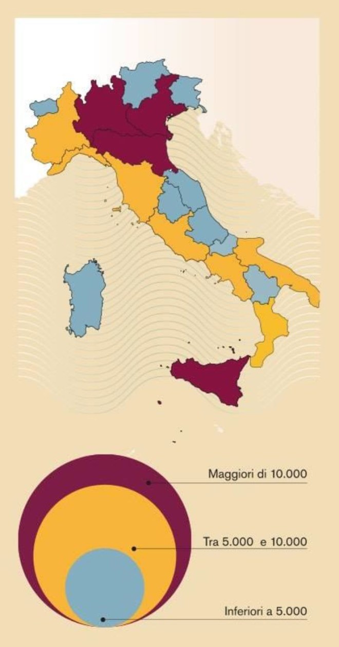 Non solo: l’infografica di seguito riprodotta, che prendo dalla pagina facebook della prestigiosa Rivista Il Mulino, mostra le regioni italiane da cui si sono verificate le maggiori partenze verso l’estero nel 2017. In testa, al di là della “prevedibile” Sicilia, tre delle regioni più “ricche” d’Italia: Lombardia, Veneto, Emilia-Romagna. La parte migliore del paese, quella col PIL più elevato (se si escludono le regioni a statuto speciale del Nord), quella che riteniamo più in grado di offrire opportunità, risorse, servizi, convenienze.