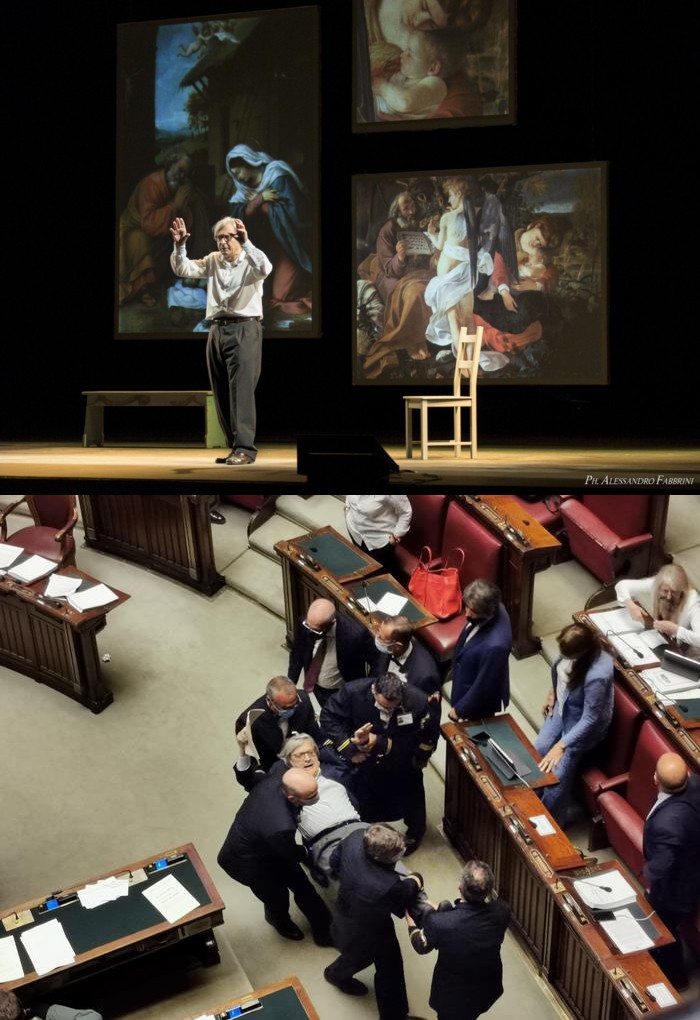 A destra: la Deposizione di un borghese, di Vittorio Sgarbi, 2020, Palazzo Montecitorio, Roma.