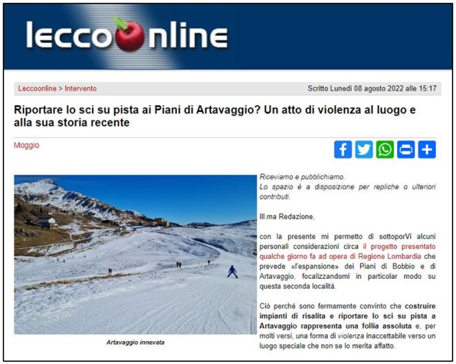 Quello imposto ai Piani di Artavaggio è un progetto che rappresenta una follia assoluta, non ci sono altre definizioni adeguate. Una follia da contrastare in ogni modo possibile.