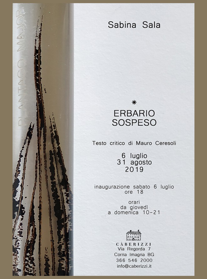Tratto dal testo critico di Mauro Ceresoli della mostra Erbario Sospeso, di Sabina Sala, inaugurata sabato 6 luglio scorso presso la BibliOsteria di Cà Berizzi, un luogo del quale di frequente vi parlo dacché lo trovo sublime, e che con la suggestiva esposizione di Sabina Sala – tale anche perché strettamente legata al mondo dei libri e della lettura, il che me la rende assai intrigante – acquisisce se possibile ancora maggior fascino.