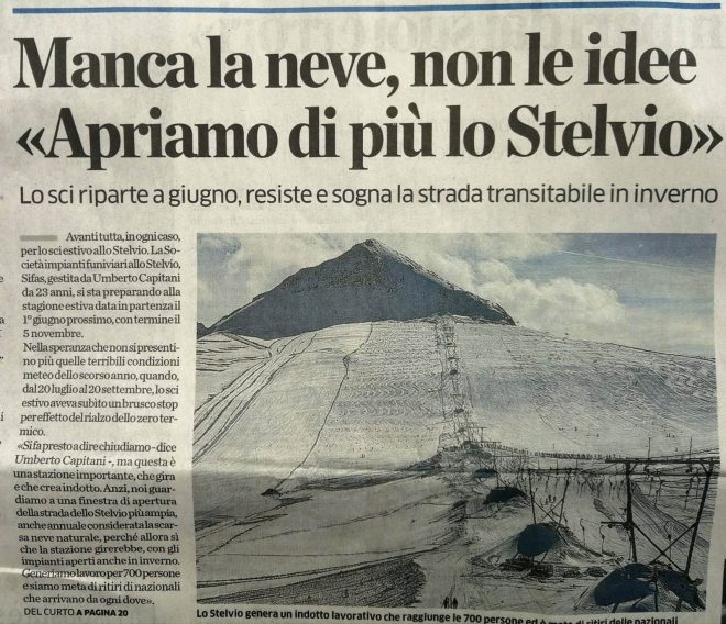 Di seguito trovate gli ultimi articoli pubblicati su “Il Dolomiti”, circa la questione del Lago Bianco al Passo di Gavia e sulla storia dello sci estivo sul Ghiacciaio dello Scerscen, nel Bernina. Trovate i link per leggerli nelle rispettive didascalie.