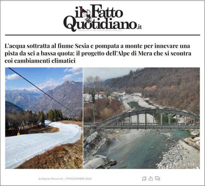 Ad esempio all’Alpe di Mera, in Valsesia, si vogliono spendere più di 20 milioni di Euro, tutti pubblici, per costruire una telecabina definita dalla stampa locale «faraonica» che partendo da Scopello, a soli 800 metri di quota, servirà un piccolo comprensorio sciistico che arriva al massimo a 1700 metri, dunque a un’altitudine che già oggi non garantisce più l’attività sciistica in modo economicamente sostenibile; tutto ciò con il grande comprensorio del Monterosa Ski a pochi chilometri. Un progetto talmente mastodontico rispetto al territorio coinvolto e alle sue caratteristiche da non sembrare giustificabile in nessun modo.